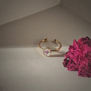 Delicate and dreamy, "Blush Whisper" is a handmade adjustable ring featuring a real pink flower beautifully preserved in a pure white resin base. The soft contrast of pink against white creates an elegant, timeless look—perfect for those who love romantic and feminine jewelry.