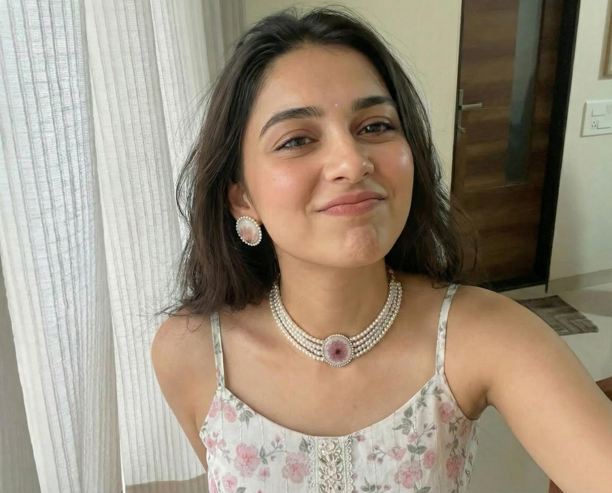 Handcrafted with care, the floral centerpiece adds a soft romantic touch, while the lustrous pearls elevate it into a truly best-in-class choker for special occasions.