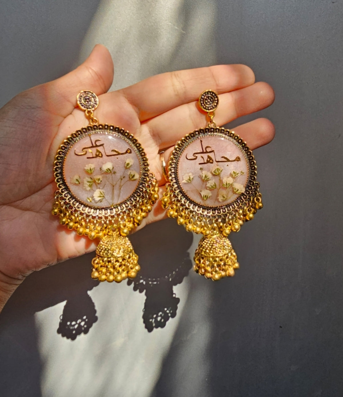 We specialize in handcrafted resin jewelry, including jhumkas, rings, hoops, necklaces, bracelets, bridal jewelry, and custom name jewelry.